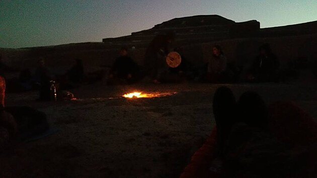 Přes den jsme se vyblbnuli na veliké písečné duně, povozili se po poušti neobvyklým vozítkem. Navštívili jsme vysychající pouštní oázu, kde jsme si dali kratší meditaci. Po tom, co jsme se vyhrabali z obrovského pískoviště zpět k vozidlům, zamířili jsme k místu v poušti, kde nás čekala seance s Ayahuascou.