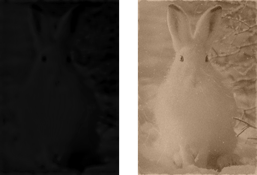 Vlevo snímek Patučňáka podzemního pořízený za polární noci.