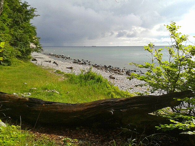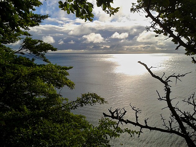 Potvrzuji, že Caspar David Friedrich známý tím, že na svých obrazech kombinoval motivy z různých krajin za účelem co nejromantičtějšího efektu, se zde poctivě držel reality. Stromy jsou tu opravdu pokroucené a útesy tak bílé jako na jeho obrazech. Chtěl jsem jít dále podél pobřeží, ale začalo pršet hodně a souvisle, obrátil jsem tedy kroky zpět. Právě když jsem se nacházel poblíž vstupu, vysvitlo slunce, běžel jsem ke břehu a narazil opět na ony schody. Uvědomil jsem si, jaká to byla náhoda nebo vyšší ruka, že jsem je ráno za tmy objevil, a že jsem mohl klidně kdekoli sesvištět dolů. Smočil jsem alespoň zapařené nohy, pomeditoval si a děkoval za z pohledu většinového člověka špatné počasí, protože jsem tu byl jen já a moře. Na focení mám pouze mobil, některé scenérie byly opravdu kouzelné, zvláště cestou pod útesy, ale nebyl dostatek světla.