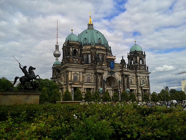 Nejdříve jsem dorazil k Reichstagu. Jakási "dubová" masívnost čiší z této budovy. Následoval Berlínský Dóm. Ještěže tu páni protestanti nebrali své obrazoborectví tak vážně. Budova je to vskutku pompézní. Následovaly muzea, operní zpěvačky zpívající za drobné apod. Udělalo se vedro, což mě začalo štvát a cesta poněkud přestala bavit. Zpátky jsem šel podél Sprévy, zabloudit jsem nemohl, neboť nádraží bylo pár metrů od řeky.