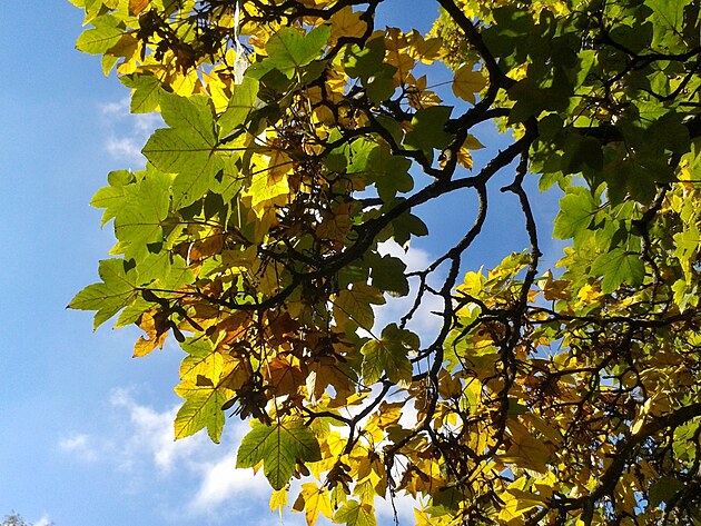 A to je vše. Opět jsem stejně jako minulý rok 28. září vstal do práce a dokonce jsem napsal šéfovi SMS s žádostí o dovolenou, neboť jsem se probudil s úpornou bolestí v krku. Čaj z šalvěje a zázvoru s citronem a medem zafungoval tak mohutně (možná proto, že zásadně "nežeru" prášky), že jsem pod dekou nevydržel a vyklusal na procházku. Z původně krátké procházky se stala delší až na Černou Nisu. Fotky jsou všechny z tohoto dne. Mobilní fotík jakžtakž zvládá dobře nasvícené lístky nebo plné slunce za zády, ale silnější rozdíly v osvětlení proti ani náhodou. Fotky od Nisy jsou více upravené a nepěkné a slouží jen k obeznámení se s destinací.