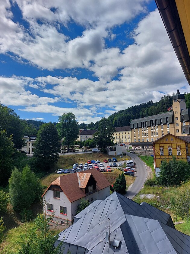 Ovšem pečlivý čtenář kalendáře si nejspíš heslo LÁZNĚ u dnešního data vyložil po svém. Mohlo nás to trknout hned ráno, že si kromě pití a polštářku bere do auta i baťůžek. Netrklo, a tak až před lázeňským domem jsme se podivili, když vystoupil a se slovy já chci do lázní kráčel k recepci.