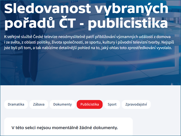 Pořad OVM alias Otázky Václava Moravce, již několik let ignoruji. Moravec sice po nástupu nového vedení ČT poněkud ubral provládní plyn co se hostů týče, nicméně, jeho pořad sice sleduje údajně několik set tisíc diváků, ale na webových stránkách ČT je pusto prázdno. Aktuálně se zájemce o sledovanost publicistických pořadů ČT doví toto (aktuální kopie z webu ČT)