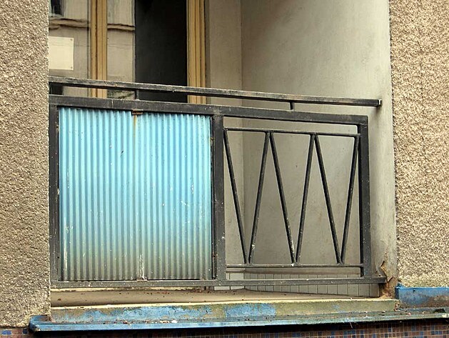 Dům je zaručeně z doby budování socialismu. Několikapatrová stavba má uprostřed balkonky, které nevypadají nijak výjimečně...