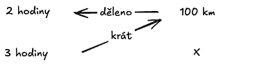 Příklad: Za 2 hodiny ujedu 100 km. Kolik km ujedu za 3 hodiny (stejnou rychlostí)?