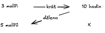Příklad: 3 malíři vymalují byt za 10 hodin. Za jak dlouho vymaluje byt 5 malířů?