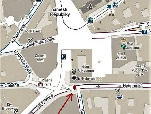 Toto jinak turisty přeplněné místo je v tak brzkou ranní hodinu téměř liduprázdné. Směrem z Náměstí republiky pomalu přijíždí k přechodu osobní auto, jede odhadem tak 10 km/hodinu. V okamžiku, kdy už je pár metrů od přechodu, vyjde mu do cesty zpoza zaparkované dodávky starý muž s holí. Nerozhlédne se, nezkontroluje pohledem, jestli o něm řidič ví a vstoupí přímo před auto. Řidič nemůže přes dodávku vidět, jak muž vstupuje z chodníku do vozovky, ale přesto stačí duchapřítomně zabrzdit, zastaví asi půl metru před ním. Muž začne rozčileně křičet a mávat holí směrem k řidiči. Ten ve snaze předejít konfliktu vystoupí a omluví se.