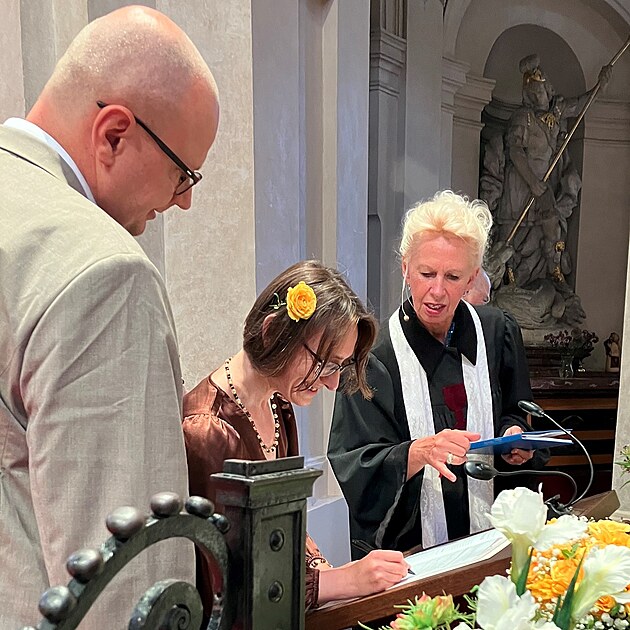 Dámy mají proti nám chlapům jednu obrovskou výhodu, dovedou být prudce elegantní i při tak prosté činnosti, jakou je podpis svatebního protokolu.