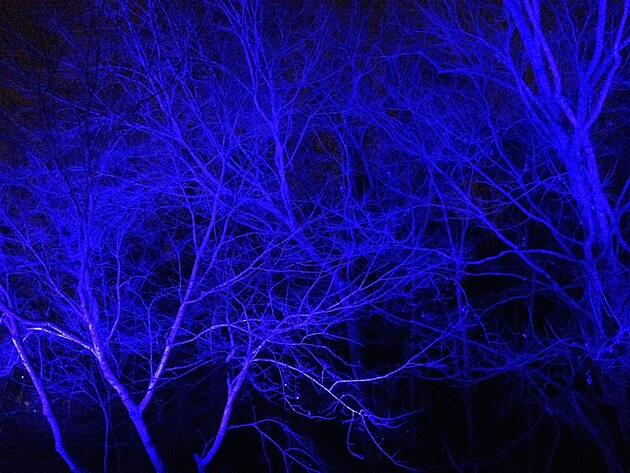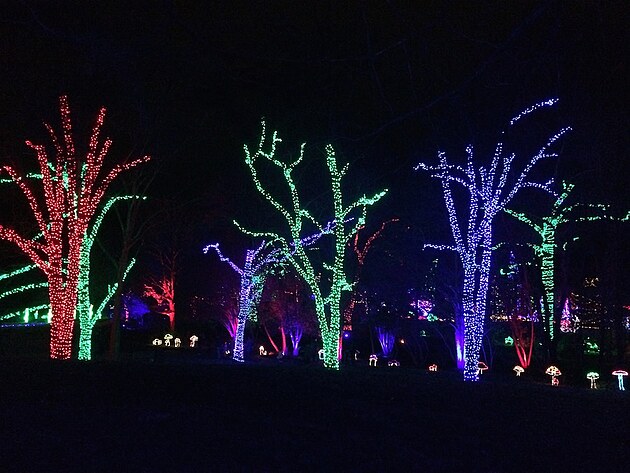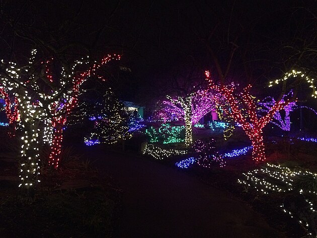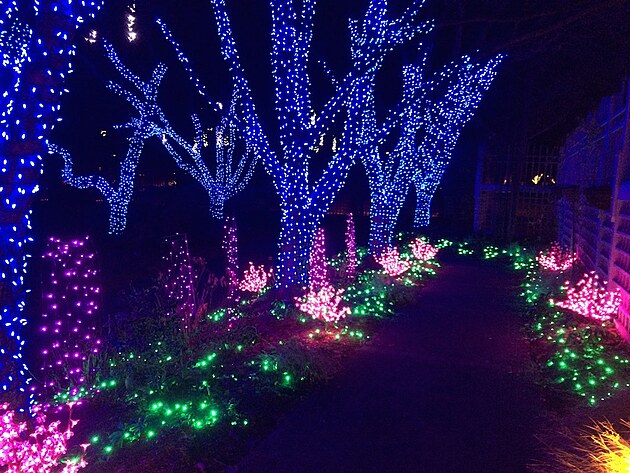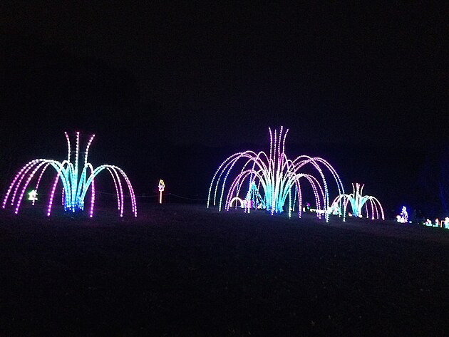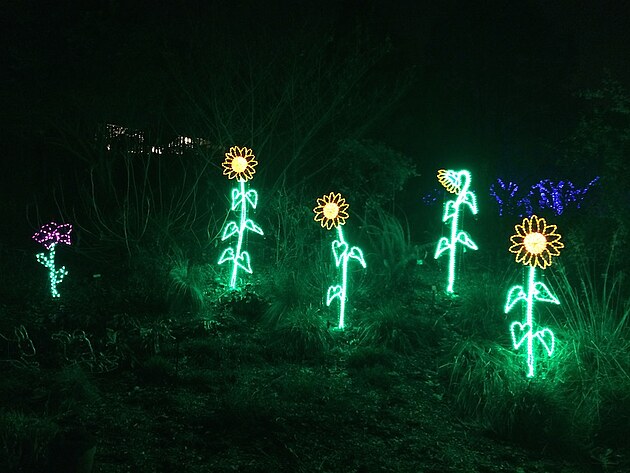 V našem parku se o Vánocích spí. Přes den je nevlídno a v noci tma jako v pytli. Jen v amfiteátru je jeden den vyhražen pro každoroční Sing-A-Long, kde si široká veřejnost může společně s profesionály zazpívat tradiční písně a koledy. A tak vás v tento čas rozjímání raději zavedu do sousední botanické zahrady (což je v podstatě pečlivě opečovávaný parčík), kde je na závěr roku instalována oblíbená "světelná procházka" noční přírodou.