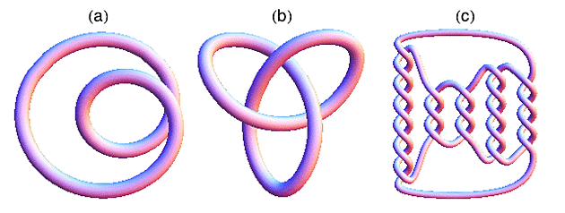 Ten druhý (b) už triviální není. Tam s tím provázkem můžeme třepat jak chceme a zauzlení se nezbavíme. Jedním z úkolů teorie uzlů je ukázat, že ve 4D se každý uzel dá spojitě zdeformovat na uzel triviální (aniž by se musely použít nůžky).