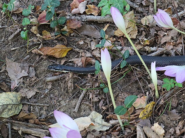Ty divoké se evidentně líbí i našim hadům (zde black rat snake).