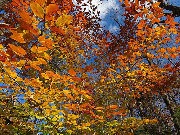 Můj oblíbený podzimní strom - buk nad rybníčkem.
