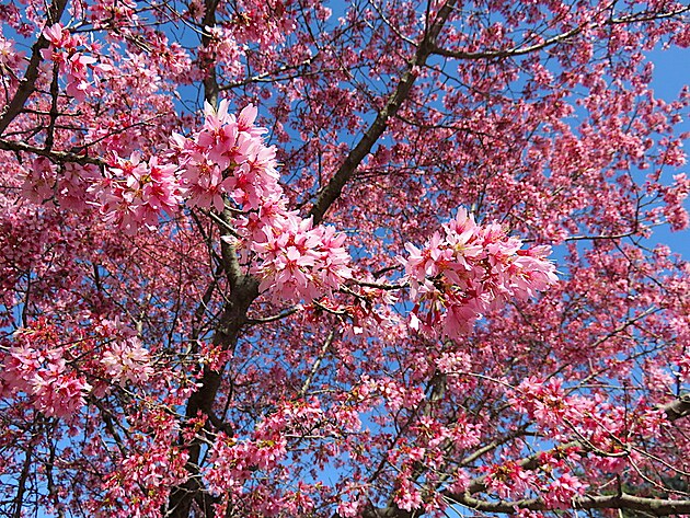 Tohle je pro změnu růžová okrasná třešeň.