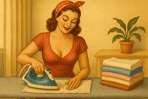 Když žena žehlí, muže myšlenky na agresivní chování vůbec nenapadají. Naopak. Pohodlně se rozvalí v křesle a svou lásku zálibně pozoruje. Pokud má navíc žena oblečený vhodný domácí úbor, například tričko s krátkým rukávem a hlubokým výstřihem, nevnímá její pohyby jako třesení, ale svůdné natřásání.