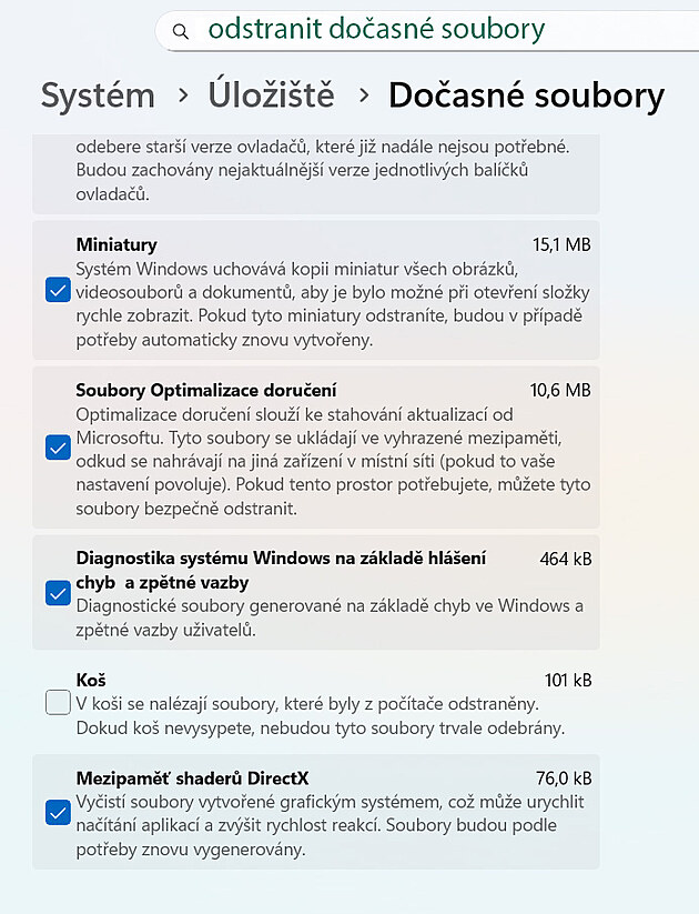 Uvolněte na disku další místo