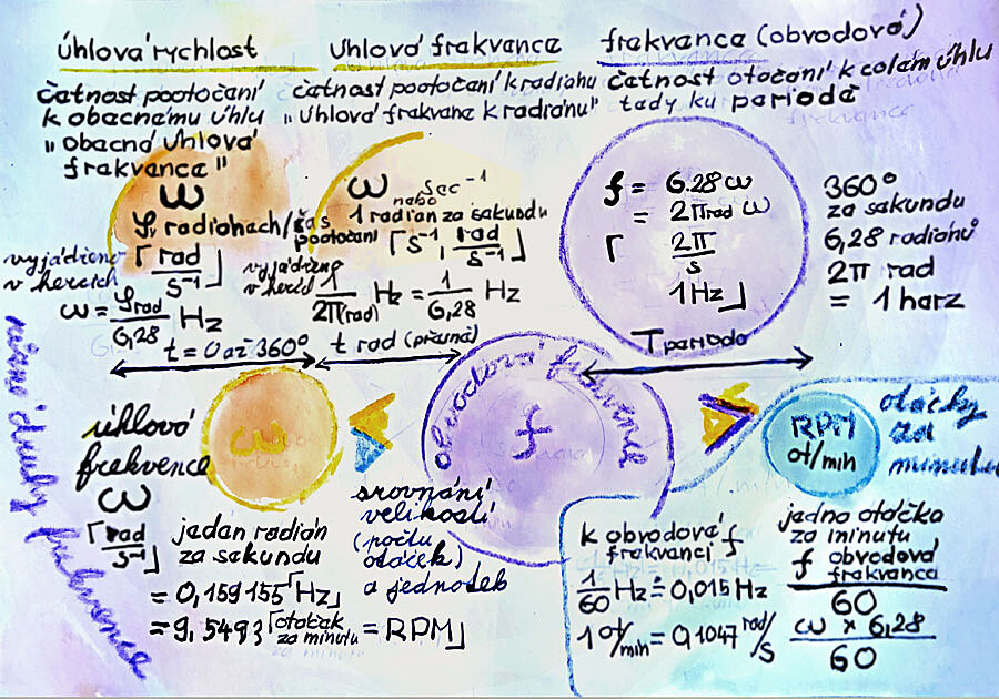 různé druhy frekvence - úhlová rychlost, úhlová frekvence, frekvence - otáčky za sekundu, otáčky za minutu