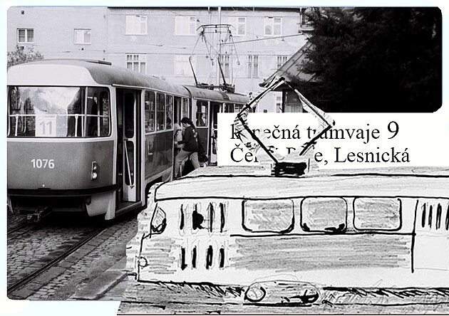 5/ ZASTÁVKY a malé kovové stavby, stará konečná „devítky“ Černá pole Lesnická a tramvaj T2