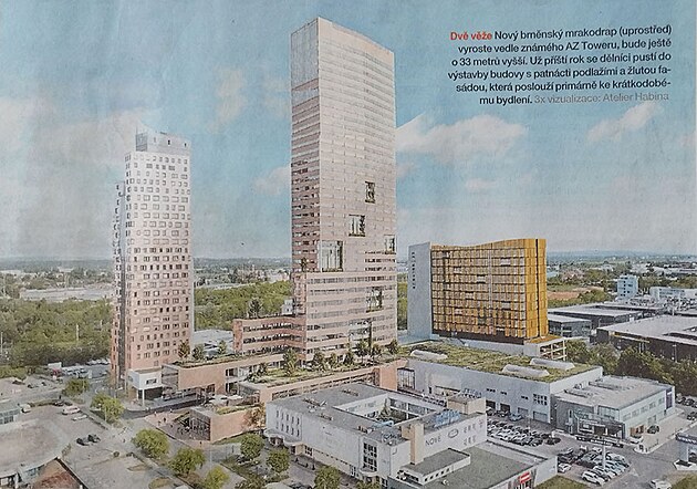 Už více jak dekádu, se brněnský mrakodrap AZ Tower svou výškou 111m honosí titulem nejvyšší budovy v ČR. Vedoucí pozici si však udrží nejspíš už jen pár let - výškou 144 metrů by jej měla zastínit věžová budova AZ Tower na vedlejší parcele Heršpická 9. Investorem by měla být rakouská firma HS Investment.