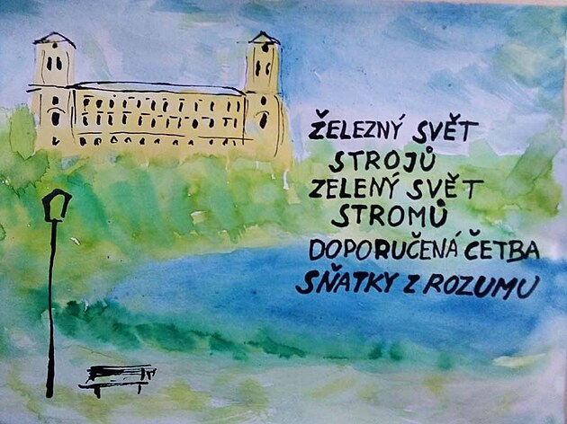 a při zpáteční cestě v autobuse vznikla ještě jedna malůvka s literární drobností