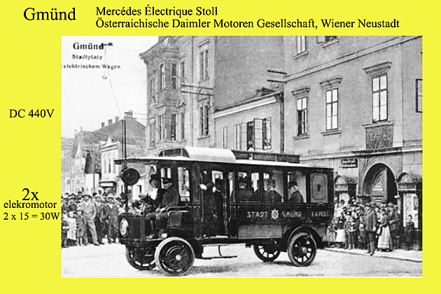 Rakouská firma Österreichische Daimler Motoren Gesellschaft ve Wiener Neustadt dodala pro trolejbusovou linku Gmünd (Cmunt) - Gmünd bahnhof (nyní České Velenice) o napájecím napětí 450 V DC trolejbusy systému Mercédès-Électrique-Stoll známeho též jako Elektro-Dailmer-Stoll. Karosérie vozidiel vyrobila vídeńská firma Jacob Lohner & Co.