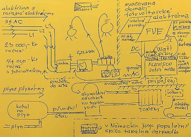 „Přes léto mě provoz domu přijde tak na dvě, tři stovky měsíčně. V zimě to byl dvojnásobek. Je to cena benzínu do agregátu. Za dřevo, kterým topím v krbu a zároveň tak ohřívám vodu, zaplatím za celý rok asi 12 tisíc,“ vypočetl Hofmann.