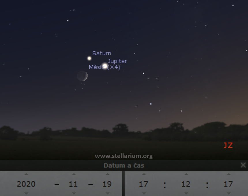 19. 11. 2020 - Konjunkce Měsíce s Jupiterem a Saturnem.