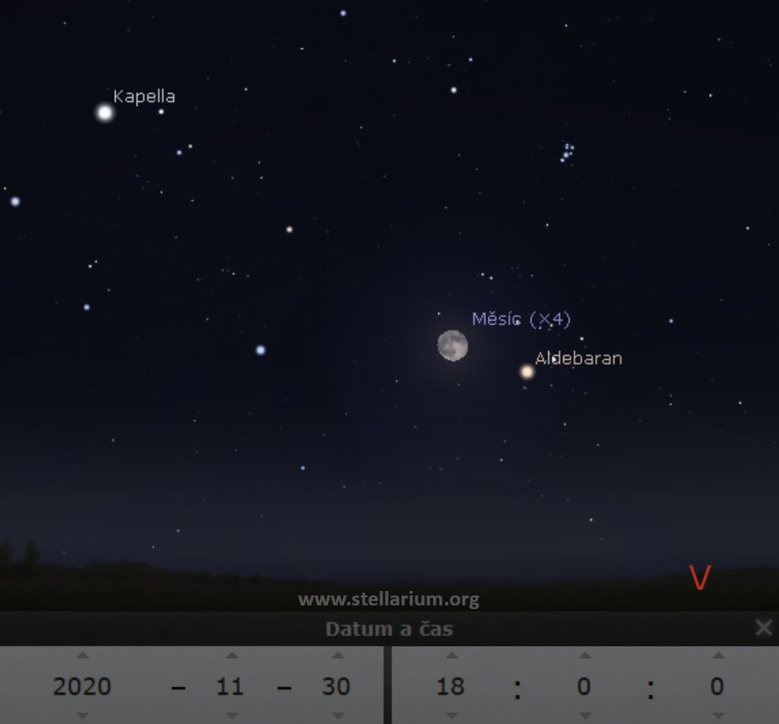 30. 11. 2020 - Měsíc podruhé v listopadu v souhvězdí Býka.