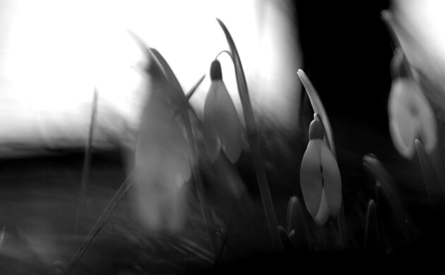 Jako purpurový plášť archanděla rozstříhaný na kousky, tak vypadají koniklece vykukující zpoza staré trávy....