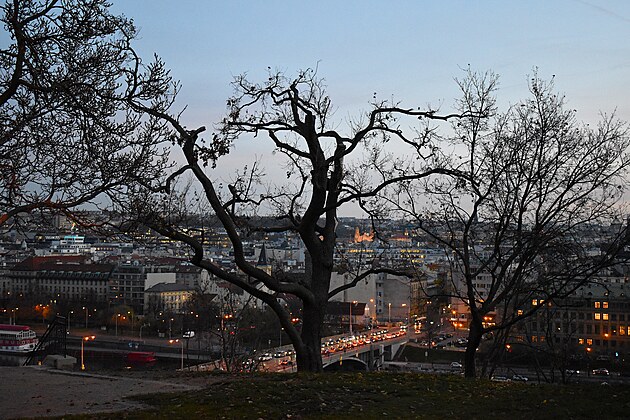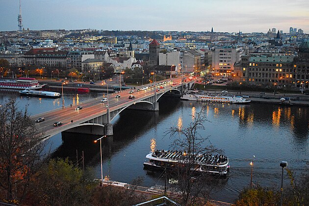 Pohledy z pražských Letenských sadů na Vltavu kolem Štefánikova mostu