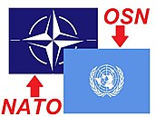 A jak by ne, když dekorací při jednání byla špatná vlajka. Sice rovněž symbol mezinárodní organizace, nikoli však vlajka alianční, jak by se slušelo.