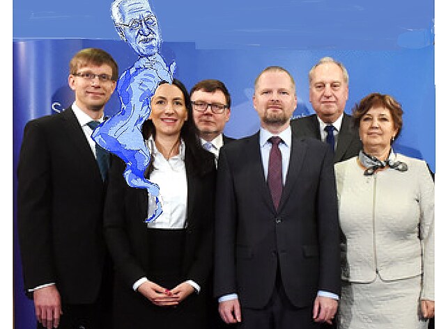 Vidíte ten rozdíl? Zdánlivě neidentifikovatelný modrý mužíček, sedící na rameni první místopředsedkyně, je při bližším pohledu zřetelný Duch Václava Klause. A nejde přitom o žádný optický klam či momentální atmosférickou poruchu či jev podobný fata morgáně, protože fotograf nasnímal ještě asi deset snímků ve snaze objektu se zbavit, ale Duch V. K. se ani nehnul.