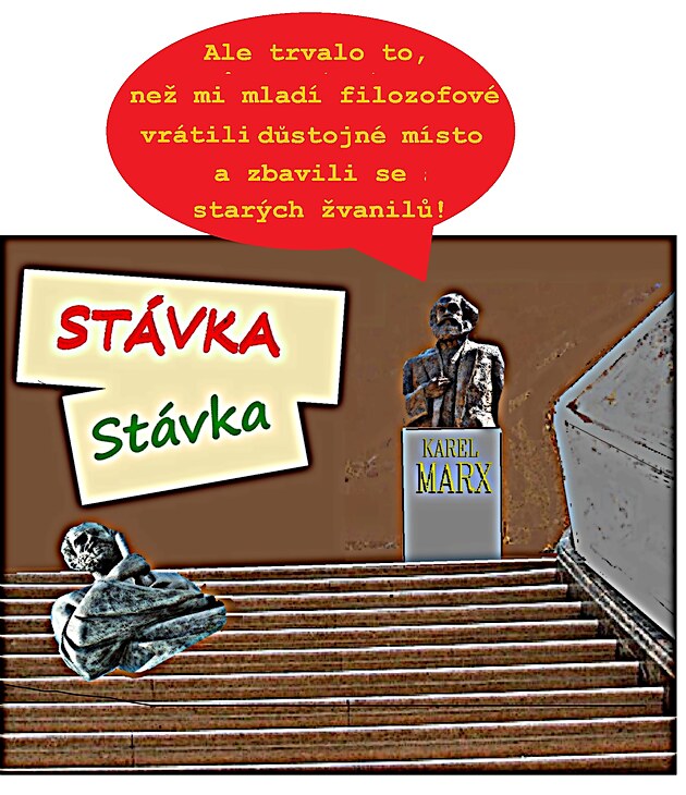 Ze stávky mladých filozofů, kteří chtějí nastolit nejenom ekologicky spravedlivý, ale spravedlivý režim vůbec, tudíž režim nekapitalistický, má K. M. radost. Tu největší, dokonce kombinovanou oprávněným pocitem rehabilitace. Dočasné?