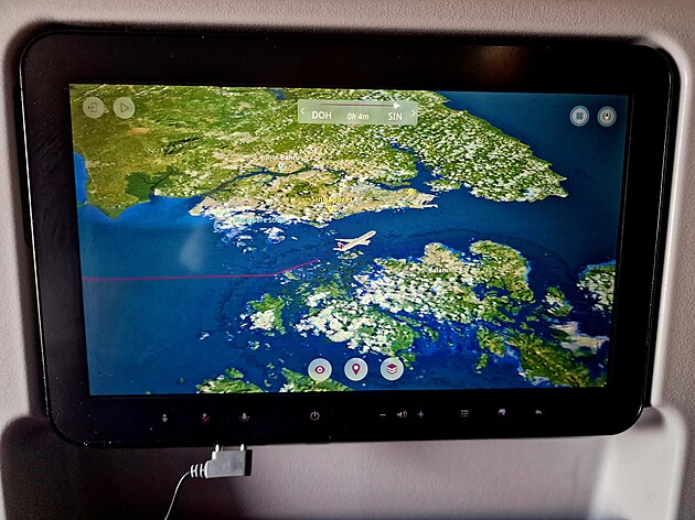 Na letišti Hamad International Airport jsme přistáli v dobré náladě v 16:30 místního času a zašli jsme otestovat tamější salónek. Vystáli jsme si sice menší frontu, ale je fajn zažít, jak to funguje či nefunguje jinde ve světě. Let do Singapuru jsme stihli na poslední chvíli, protože se odlétalo z terminálu E, který byl od salónku vzdálen půl hodiny rychlé chůze. Museli jsme se svézt vláčkem a odlet ve 20:10 jsme stihli ještě s malou rezervou. Tentokrát jsme letěli větším letadlem. Byl to Airbus A350-900 s kapacitou 350 cestujích. Byl obsazen do posledního místa. Na letišti Changi jsme přistáli ve čtvrtek ráno v 8:45 místního času a jenom letmý pohled z okna nás ujistil, že zima nám nebude a že se ohřejeme...