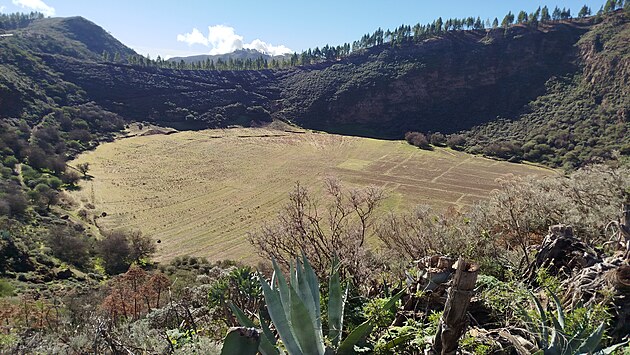 Na druhé pohled z vyhlídky na sopečný kráter Caldera de Los Marteles zalitý sluncem.