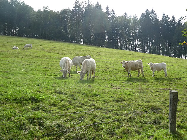 Společnost nám dělaly pasoucí se „šťastné“ krávy.