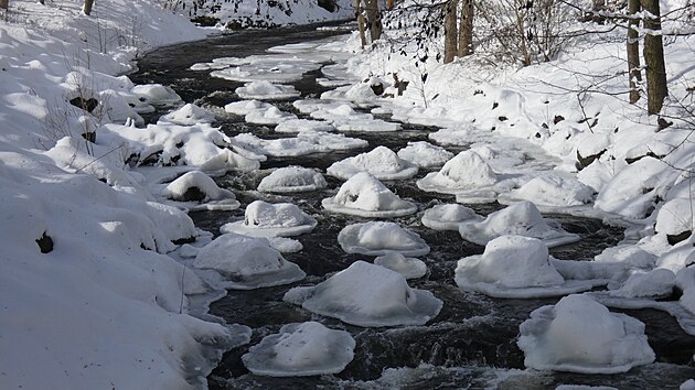 Koncem února je už ale sníh skoro pryč, jen ledy na rybníku zatím odolávají. A ani ta první zelená není špatná.