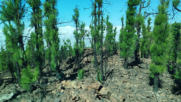 Na Kanárských ostrovech jsou často požáry, ale příroda si poradí. Takto obrůstají ohořelá torza stromů.