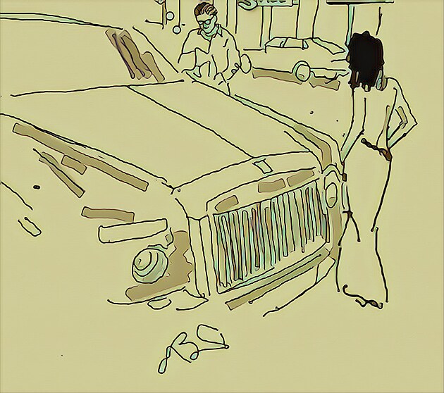 Kdy žena chce najít chlapa, vždycky ho najde,“ řekla a zářila jako plamen. Slunce zezadu jí vykouzlilo ohnivou svatozář.