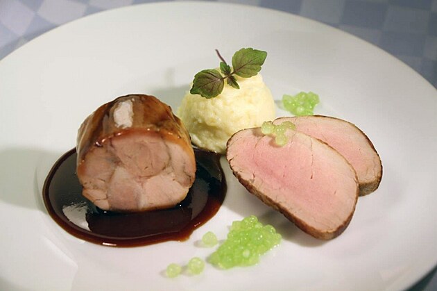 Pokročili jsme dál, snažili se zorientovat mezi stánky a náhodou procházeli kolem stánku hotelu Radisson Blue, tedy jedné ze dvou restaurací, které byly letos v ČR oceněny Michelinskou hvězdou. Šéfkuchařem restaurace Alcron je Roman Paulus a od něj jsme ochutnali Vyzrálé hovězí z Jelcových Lhotek s cizrnovou kaší a pečenou karotkou za 6 grandů. Maso bylo dobře připravené, křehké a chutné, cizrnová kaše byla naprostá bomba a karotka byla celkem nudný a spíše estetický, než chuťový doplněk. Jídlo jako celek nebylo zlé, ale přiznám se, že moje očekávání od restaurace tohoto kalibru byla větší. Pokrm byl chuťově sladěný, celkově dobrý, ale přeci jen chuťově trochu uniformní, žádný koncert chuťových pohárků se nekonal.