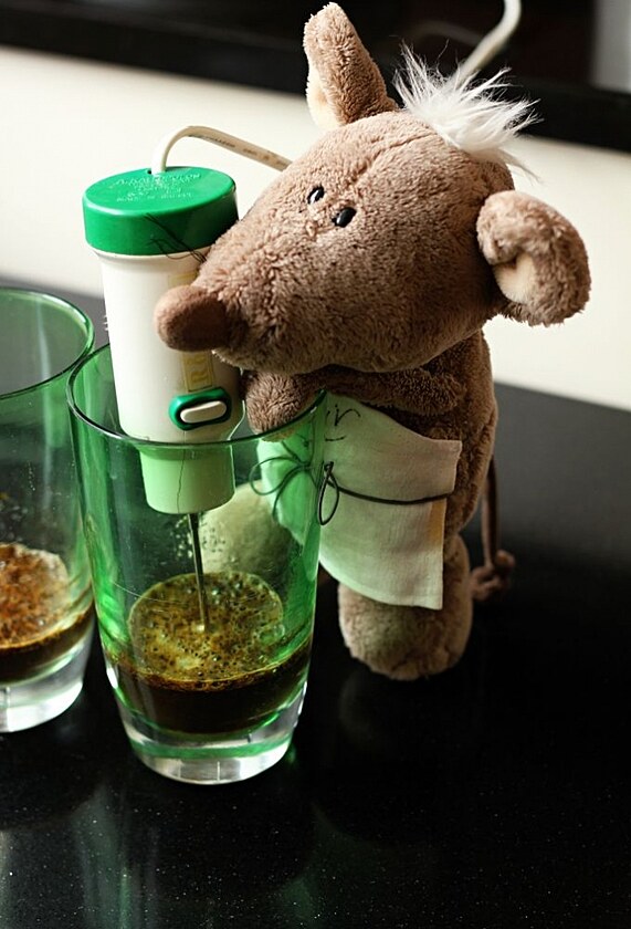 Ke kafi a cukru přilejte trochu vody a prožeňte to šlehačem.