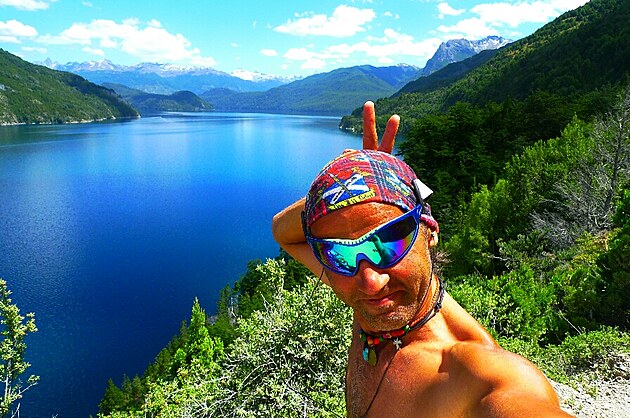 Vyrazil jsem tedy na průjezd národním parkem po kamení a šotolině. Hlavu plnou ranního adrenalinu a dobrodružství. Ve spojení s tím, co jsem viděl vůkol.... zasněžené vrcholky hor a křišťálová jezera, byl jsem v ráji. Cesta byla extrémně náročná. Nahoru a dolů, tuny prachu v nosních dírkách, ale pocit blaha na duši. Když jsem si dal pauzu u jednoho z tisíců jezer a koupal se, pozoroval jsem, kterak rodina na břehu pořádá piknik a nabírá vodu přímo z jezera do sklenic. Tak tomu říkám úlet. Může to zkusit třeba i rodina z Přerova na Laguně. A ať o tom pak napíšou knihu! Park Loc Alerces je nenahraditelný hlavně z důvodů, že v něm rostou stromy Alerce, podobně kalifornským sekvojím, které se dožívají 4000let... opakují 4000let... a přibývají zhruba 1cm za dvacet let. Já nevím, jestli jste schopni si to představit... No když před tím stromem stojíte, tak mu musíte vykat ze slušnosti a ptát se ho na to, co prožil je mrháním času. Neskutečné. Na konci parku jsem prošel důkladnou očistou včetně umytí hlavy a vyrazil na asfalt. Milují asfalt, to tu píšu již po několikáté... ale je to fakt. S asfaltem pomalu končím na budoucích 1500km, tudíž si ten svištot užívám. Dojel jsem do posledního z městeček před přejezdem přes hory do Chile... do Travelínu. Dal si café, nakoupil zásoby a ustlal si u řeky Kansas... Ono, kam jinam v Argentině, než do Kansasu .. dobrou a noc!