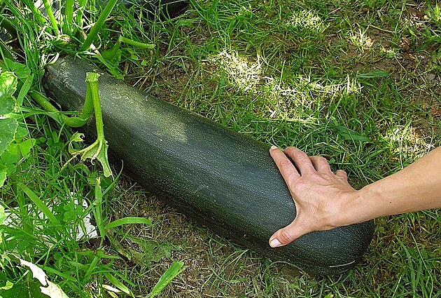Na smíku přerostlá cuketa. Vypadá dobře, ale špatně se z ní může udělat. Foto: Lmbuga, Wikimedia, volné sdílení pod licencí Creative Commons.