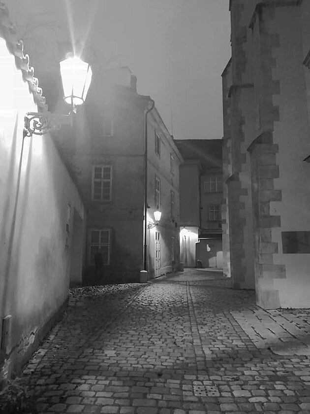 Z rozjímání mě vyrušil divný zvuk. Asi prvně jsem slyšela ten rachot, když se rozsvěcují pražské lampy. Stála jsem v Nerudovce U Dvou slunců, s domácím bramborákem a točeným pivem v ruce. Najednou hlasité praskání, jakoby ta skla luceren rupala jedno za druhým. Tohle si můžete prožít jen v dnešní době, když je ulice bez turistů a kolem vás ticho. Ale musí trochu mrznout.