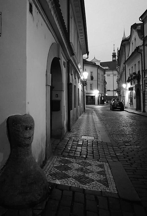 I tenhle fešák si zahrál ve filmu, jen už nevím, jestli to byl Maharal nebo něco jiného. Každopádně dnes je v prázdné ulici nepřehlédnutelný.