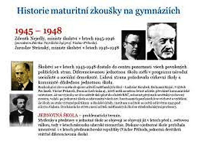 Z gymnázia na měšťanku jsme v devětačtyřicátém přešli jako jeden hoch, protože jsme byli sekundáni a ti neměli nárok dokončit gymnázium. Terciáni se jakžtakž provlékli mezi paragrafy nového zákona o sjednoceném školství z dubna 1948.