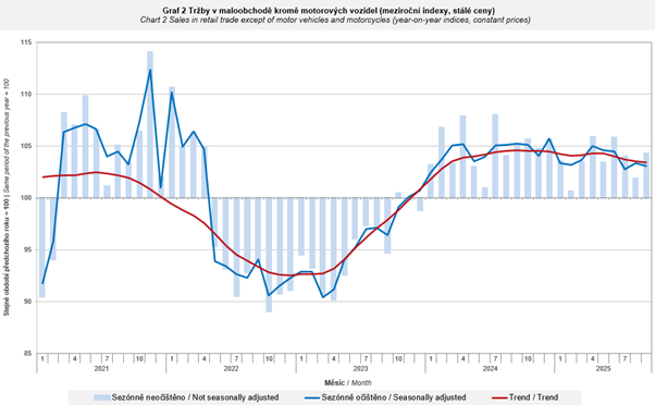 Zdroj: ČSÚ, https://csu.gov.cz/rychle-informace/maloobchod-zari-2025