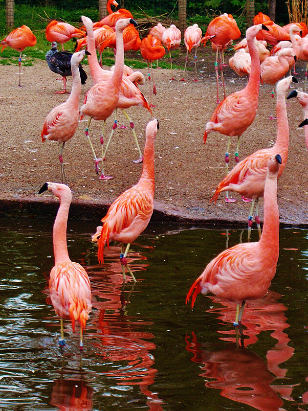 I když růžoví plameňáci normálně lezou s blaženým výrazem do vody...