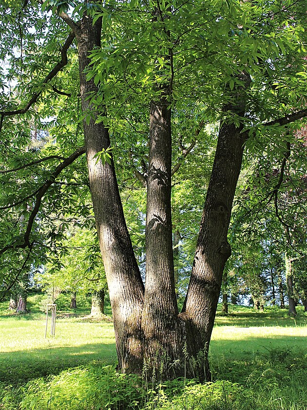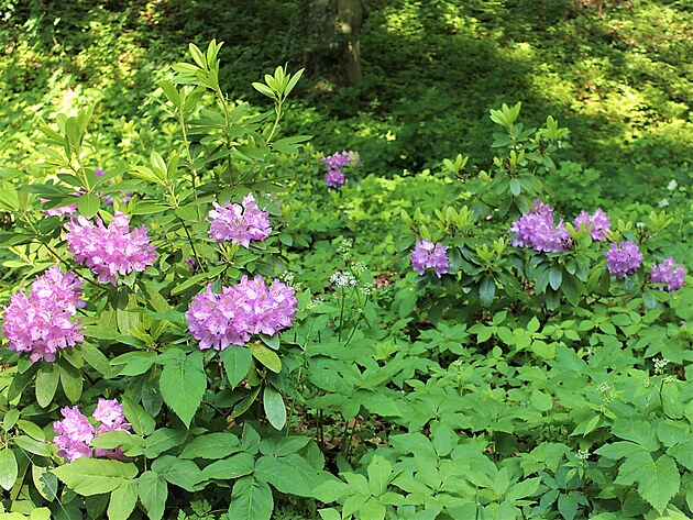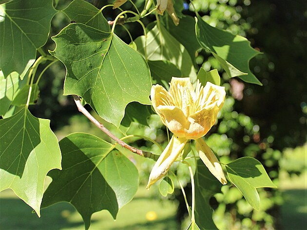 Rostou tu duby letní, červené buky, tsuga kanadská, smrk omorika, jírovec a také vzácný liliovník tulipánovitý, který právě kvete.