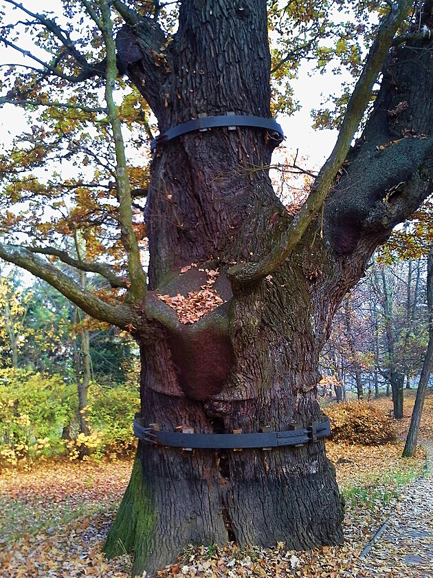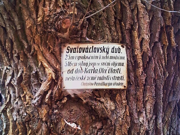 Památný Svatováclavský dub najdete u cesty z parkoviště, východně od chrámu.
