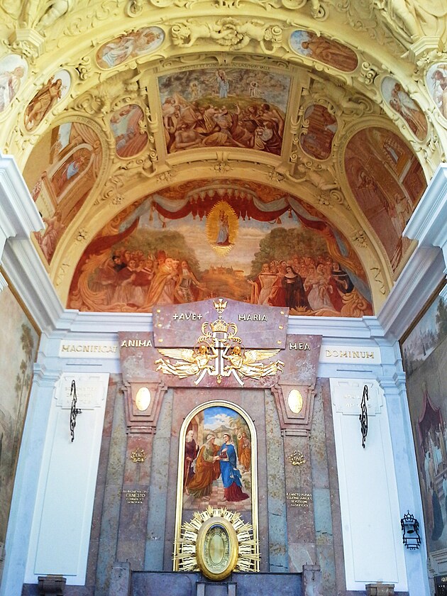 Půvabné obrazy mariánských zázraků zdobí stropy ambitů - můžete si je prohlížet celé hodiny...